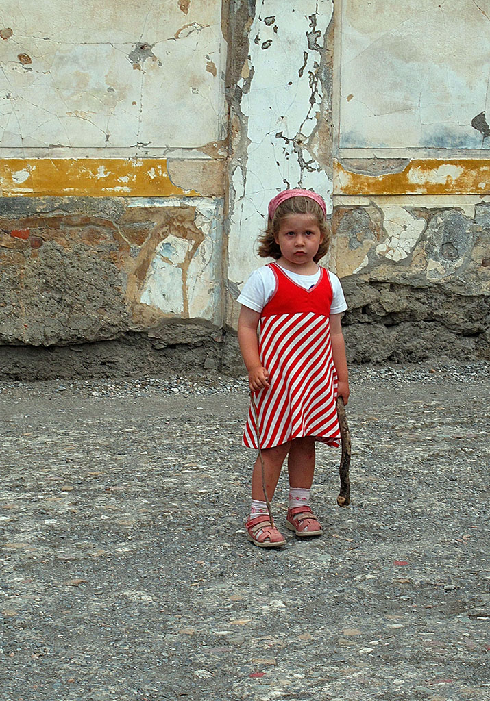 A little girl stands in Pompeii, Italy on Saturday, June 11, 2011. Mount Vesuvius erupted in 79 AD demolishing the city.