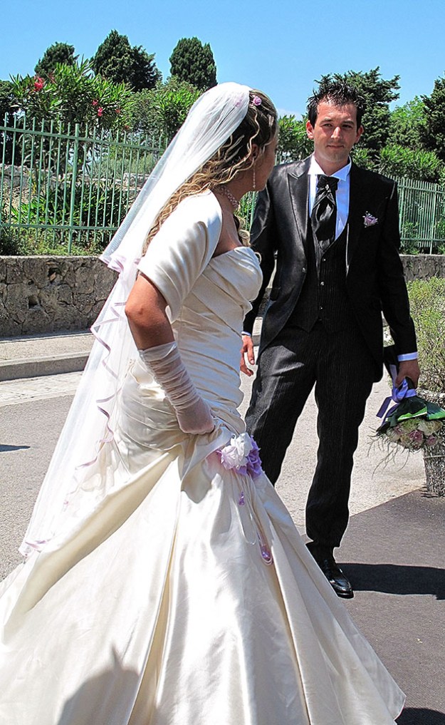 A wedding takes place in Paestum, Italy on Sunday, June 12, 2011. Paestum is known for its three temples dating from the first half of the 6th century BC.