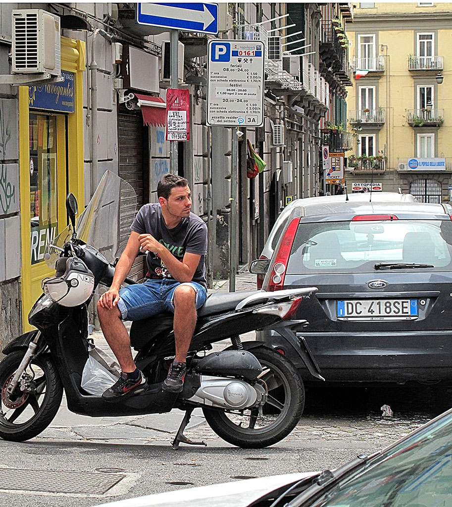 A man sits on his motorcycle in Naples, Italy on Saturday, June 11, 2011. Naples is the capital of the region of Campania.